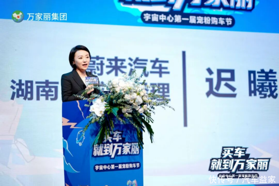 随后,蔚来汽车湖南区域总经理迟曦女士、深蓝汽车湖南区域经理冯逸琳女士分别登台发言。蔚来汽车湖南区域总经理迟曦女士对本次购车节的顺利启动表示热烈祝贺,并衷心感谢万家丽搭建的优质交流与展示平台。她表示,选择“宇宙中心万家丽”就意味着占据城市流量C位,当前汽车产业正经历百年未有之变革,新能源汽车是这场变革的绝对主角。作为高端新能源汽车代表,蔚来致力于将全球领先的智能电动汽车技术、覆盖全省的充换电网络布局带到三湘大地,这不仅是商业拓展,更是与湖南高质量发展同频共振的切实行动,助力湖南 “三高四新” 美好蓝图实现。她强调,“买车就到万家丽”已成为湖南车友间的广泛共识。此次,蔚来携被誉为“年轻人第一台理想旅行车”的ET5T和“颜值担当”溜背SUV EC6亮相,并入驻名车交易展示中心,诚邀广大消费者亲临品鉴。